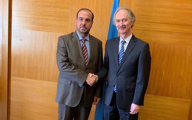 رئيس هيئة التفاوض يلتقي بيدرسن