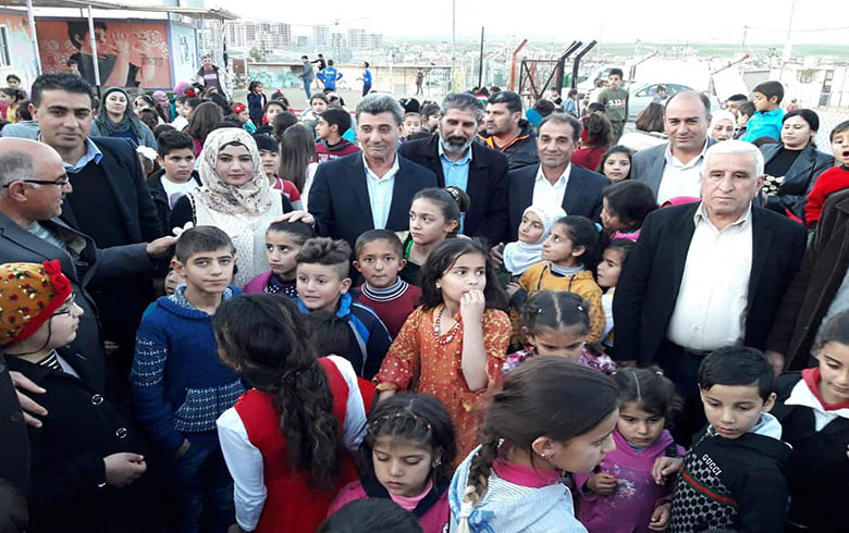 وبحضور أعضاء من لجنة ممثلي المدارس في مخيم دوميز وتلاميذ المدارس الابتدائية الذين يتبعون الدورات التعلمية في مختلف المواد والتي تشرف عليها مركز جكر خوين الثقافي .